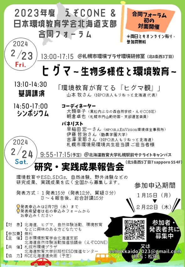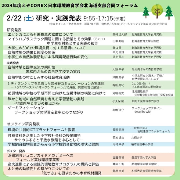 第二部としては、教育、福祉、環境などのさまざまな分野の立場の方からの研究発表をしてもらいますので、以下の要領をご確認いただきまして、会員の皆様には奮って申し込み・ご発表をお願いできればと思います。