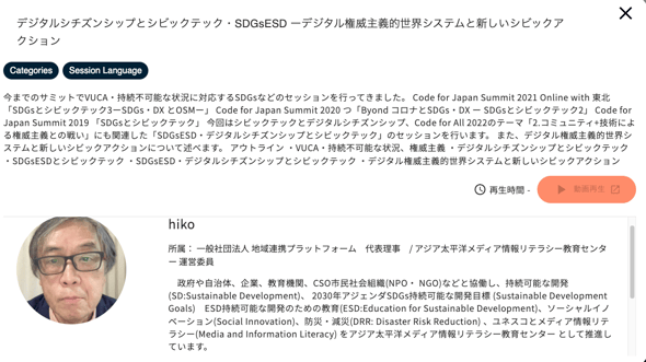 昨年は、Code for Japan Summit 2019での「SDGsとシビックテック」を発展させ、新型コロナウイルス感染症対策とSDGs、シビックテックについての講演とディスカションを行いました。