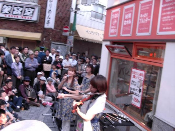 商店街沿いにいくつものスポットで様々な大道芸やパフォーマンスが行われていた。