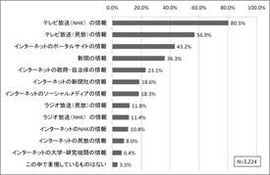 野村総合研究所が、震災情報について3月19日から20日にかけて、関東在住の20~59歳の男女を対象に調査し、3224名から有効回答を得た。