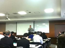 「被災地の現状=被災者の立場から」としてアトリエ自遊楽校の新田新一郎氏(仙台在住)が被災地の現状を述べるとともに、こどもたちと遊びを通じて元気になる東北発の「こどもの笑顔元気プロジェクト」について語った。