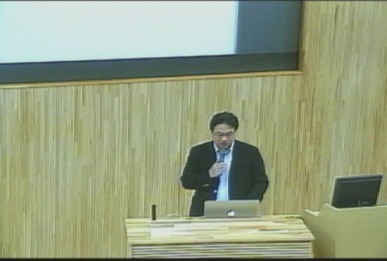 報告1「Twitterを利用して高校生と大学生・社会人が進路と学ぶ意味について考える"Soclaプロジェクト"」山内祐平氏(東京大学 准教授)の報告が行われた。