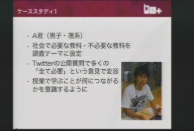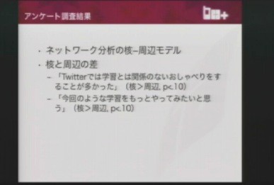 高校生同士はつながっているが、高校生と大人がつながつていないので、学習、フォーマルラーニングはその学習集団の範囲に留まっているが、ソーシャルメディアを導入することで、学習状況を変える試みを行った。