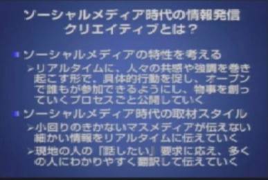 実際のソーシャルメディアの取材と発表のの方法について語った。