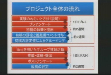 協調学習でソーシャルメディアを使って学習者同士が小論文を相互添削する試みである。