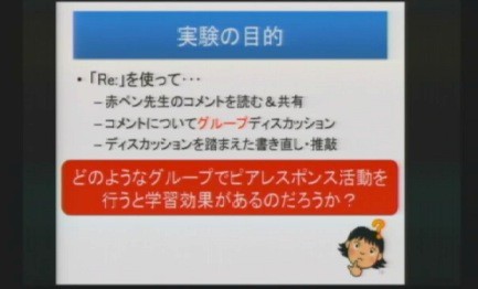 グループで小論文を相互添削するシステム"Re:"の今後の使い方の可能性については、言いたい事がいえる関係をつくることである。