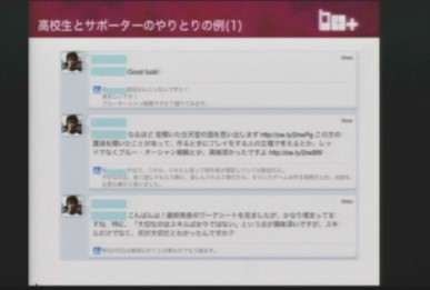 このSoclaプロジェクトで、例えば「古文」は学ぶ必要がないと思う高校生が、ソーシャルメディアの公開質問で社会人に聞いたところ、社会人からその必要性を解かれて納得した。