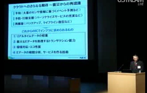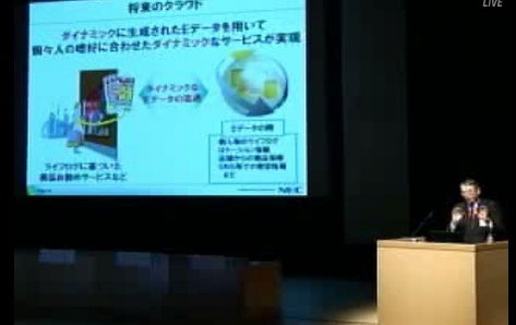 講演「人と地球にやさしい情報社会の実現に向けて ~ クラウドの未来 ~」として遠藤信博日本電気株式会社 代表取締役 執行役員社長の講演があった。