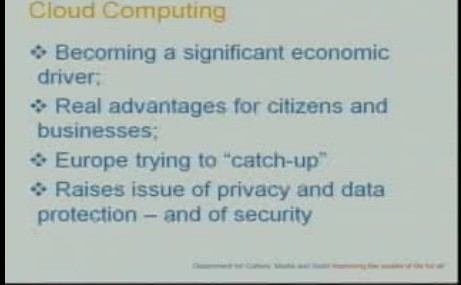クラウドコンピューティングでは、テクノロジーがセキュリティの確保により確立し、eコマースが盛んになり、コミュニケーションの変化がおきている。