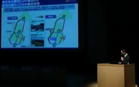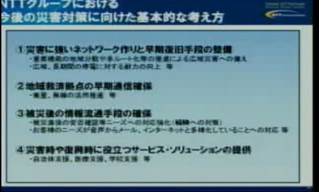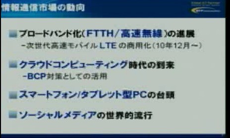 「クラウド時代におけるシームレスなICTの実現に向けて~ “Global ICT Partner” としての挑戦 ~」として有馬彰NTTコミュニケーションズ 代表取締役社長が震災復旧と自社の取組みを語った。