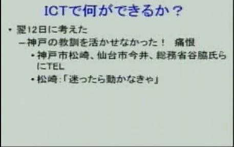 今回、下記のICTのモデル事業が震災でいきた。仮設でもICTのモデル事業を発展させるように出来るようにしたい。