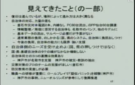 被災者、市、県政府、救援機関、市民・ボランティアの情報共有の仕組みこれができれば、もっとできた。