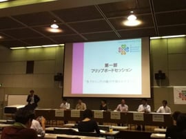第一部:「各プロジェクトの魅力や強みを共有しよう」として全国のESDの6団体によるフリップボードセッションがNPO法人環境市民 代表理事の杦本育生氏のコーディネートで行われた。