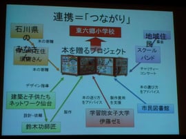 同校では、被害の少なかった学校として「震災を他人事にしない」、「このときだからできる教育」を考え、児童発案による被災した「東六郷小学校へ本を贈るプロシェクト」を行った。