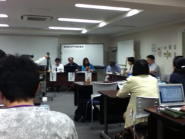 パネルディスカッション<復興活動と ICT の活用、iSPP の果たすべき役割>では、報告者と神戸と学ぶ防災市民塾事務局長の松崎太亮氏、ソフトウエア開発代表取締役社長の酒井紀之氏(iSPP共同代表)によって論議された。