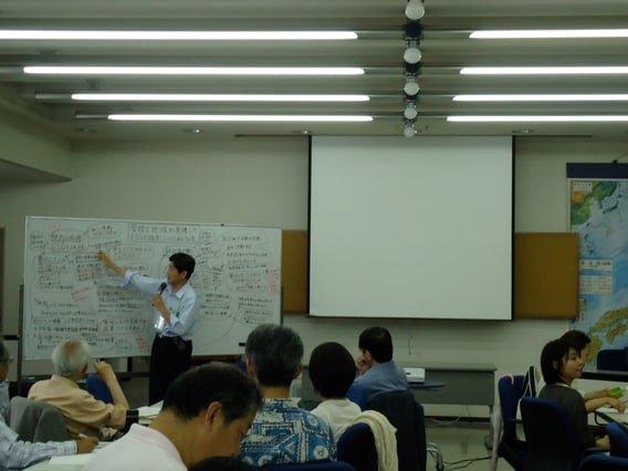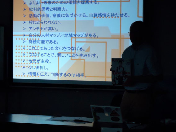 その後、コーディネーター 吉澤卓氏により、参加者とともに「コーディネーターの役割 (ESDとのつながりも含め)」、「コーディネーターに必要なスキル」、「どうしたらESD的コーディネーターは育つのか?(どうやって地域でコーディネーターを育てるのか?)」、「コーディネーターが活躍できる社会的仕組みとは?」などを検討した。