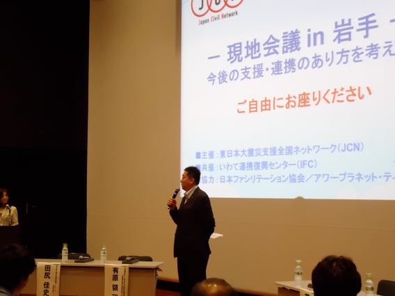 7月13日、岩手県大船渡市のリアスホールで「第4回東日本大震災支援全国ネットワーク(JCN)現地会議 in 岩手-今後の支援・連携の在り方を考える-」(主催:東日本大震災支援全国ネットワーク JCN 共催:NPO法人いわて連携復興センター(IFC) 協力:NPO法人 日本ファシリテーション協会NPO法人 アワープラネット・ティービー)が100人以上の参加者を得て行われた。