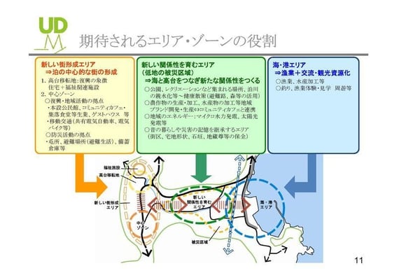 作山氏は、この計画を単に住居の確保、集団移転に留まらず、高齢化している地域での漁業のあり方、新しいソーシャルビジネスも考えて、移転元の土地利用、漁業、グループホームとの連携も考えて都市計画的手法を駆使して、持続可能な地域づくりのエリアマネージメントを行ったという。