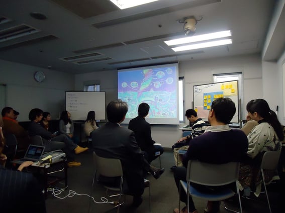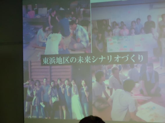 その後、東北フューチャーネットワークの目指すところの説明と特定非営利活動法人ジェン(JEN)が宮城県石巻市のふたつの地区で若者と地元の人たちとで行ったフューチャーセッションの様子を述べた。