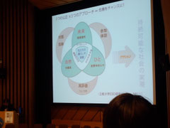 阿部治氏(立教大学ESD研究所長・教授)はESDと震災について述べた。