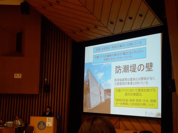 鬼頭氏「災害について人々が綿々と伝えてきたもののなかに、遊び、お祭りというもの。身体的な自然との関わり。身体をコントロールできるという近代的なものの見方もありますが防潮堤の問題につながるのでは」