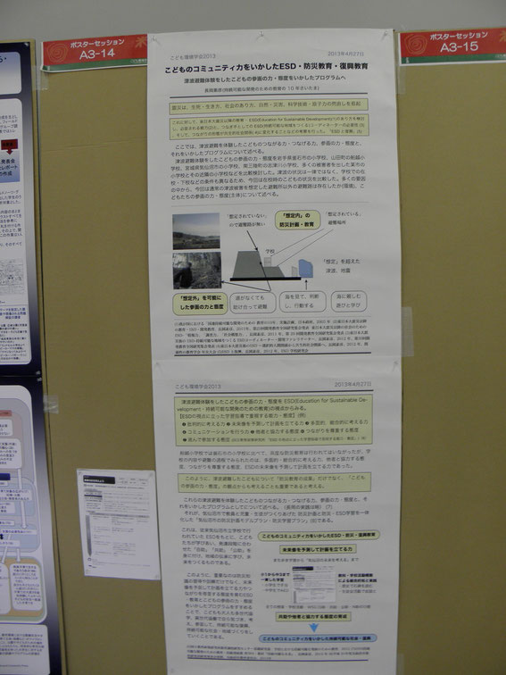 4月26.27日、こども環境学会2013年大会(東京)「こどものコミュニティ力―こどものつながる力・つなげる力―」が東京の東海大学で行われた。