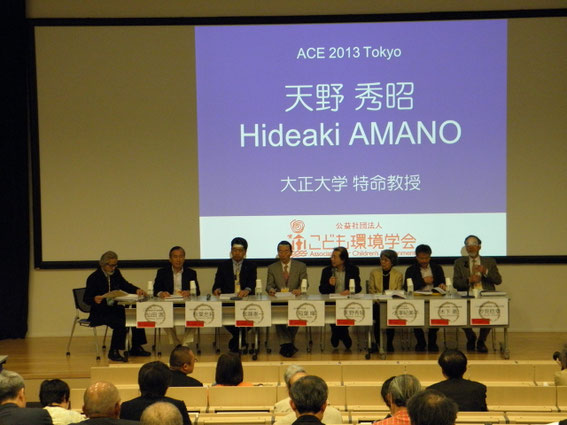 パネルディスカションでは、まず、天野秀昭氏(大正大学特任教授)から日本には外で遊ぶことの政策が無く、体に合わせた環境で成長するこどもが人工環境に合わせていることの不具合があるという。