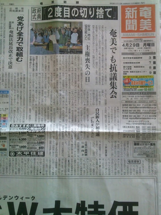 翁長市長は、米施政権下で圧政に苦しみ、復帰後も続く基地負担について「残念であり、無念であり、深い悲しみを覚える」と述べた。4月28日は「全県民が思いを深くして、その意味を理解する日」と語り、「沖縄にとってどういう意味を持つか、政府は真摯(しんし)に受けとめてほしい」と訴えた。