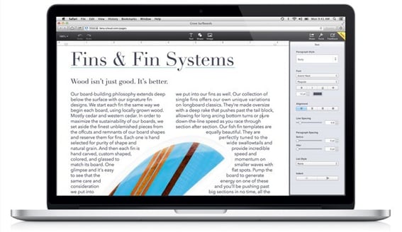「Google DriveのDocsやSpreadsheetsのようにブラウザ上で、PagesやNumbers、Keynoteが利用できるようになります。もちろんマイクロソフトのWord、Excel、PowerPointなどOfficeで作ったファイルも利用可能です。」Safari 6.0.3以降、Google Chrome 27.0.1以降、そしてInternet Explorer 9.0.8をサポート。