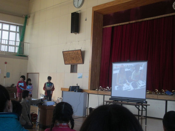 青根小の児童による若者と大人がやってることをみて、考えた地域の問題と解決の発表。