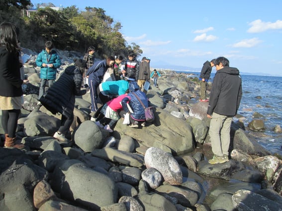 磯辺の生き物調査。