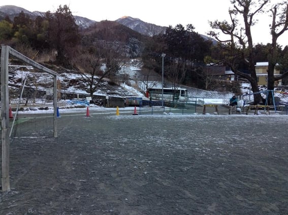 小学校前で水を流しました。