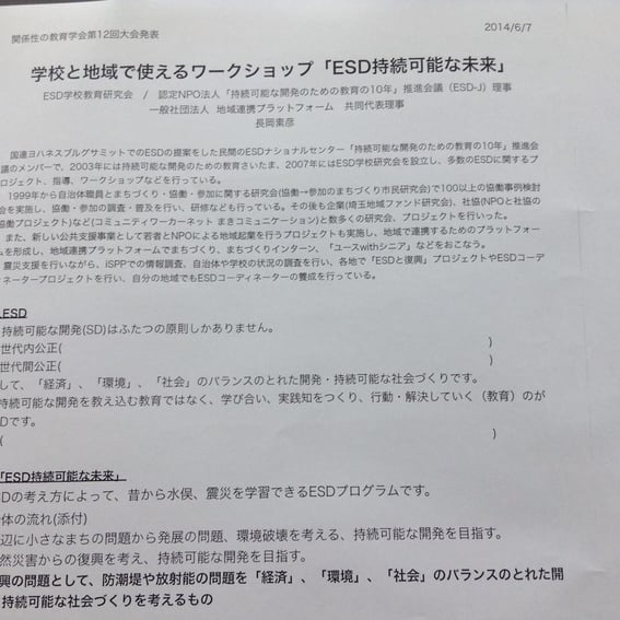 学校と地域で使えるワークショップ「ESD持続可能な未来」