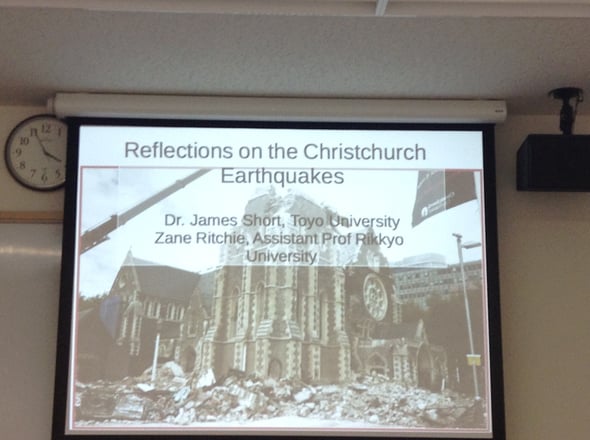 11月1日、「紛争・災害復興へのナラティブのちから」(平和教育地球キャンペーン)が東京の大東会館で開催された。 リッチー・ ザイン氏(立教大学)、ジェイムズ・ショート氏(東洋大学)は東北の避難所の調査を及び海外の一時避難との比較をおこなっており、比較しているニュジーランドのカンタベリー大地震(2011)の被災地のクライストチャーチの市街地は、今でも貧困地区は放置され住む場を失っているとのこと。