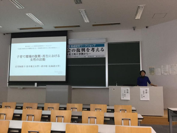 「子育て環境の復興・再生における女性の活動」として庄司知恵子氏(岩手県立大学)、「被災地における地域サポート人材の役割と課題」として図司直也氏(法政大学)が発表した。