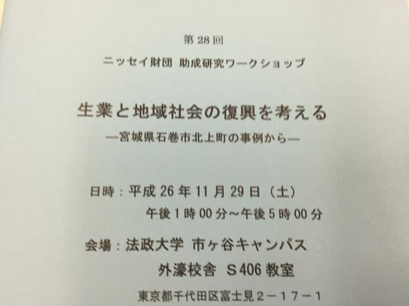 第28回ニッセイ財団 助成研究ワークショップ「生業と地域社会の復興を考える一宮城県石巻市北上町の事例から」が11月29日に法政大学で開かれた。
