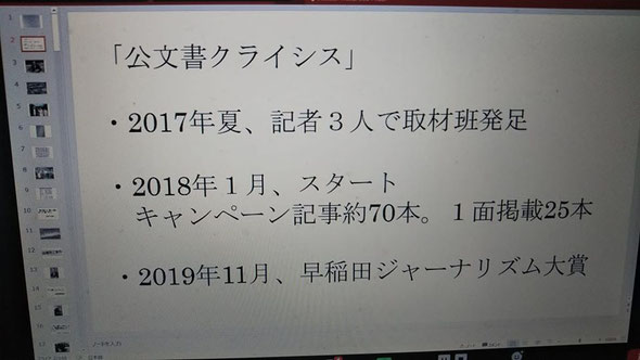毎日新聞の大場弘行さんの報道の自由と公文書・情報公開の講演です。