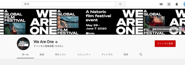「We Are One:A Global Film Festival」は、映画製作会社「トライベッカ・エンタープライズ」とYouTubeが、4月27日(米・ニューヨーク時間)に共同で開催を発表したデジタル映画祭。5月29日から6月7日に「YouTube.com」「We Are One」のプラットフォーム(https://www.youtube.com/WeAreOne)で、世界各国21の映画祭のプログラムを無料で公開する。