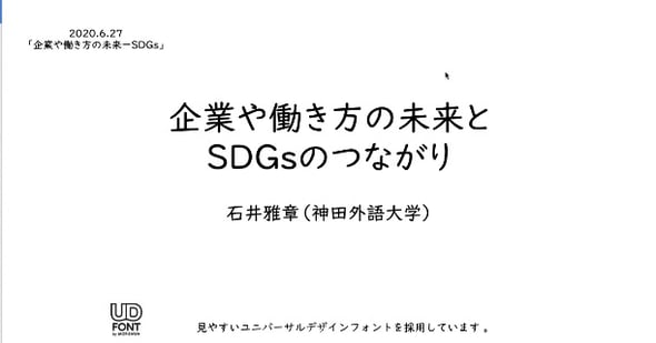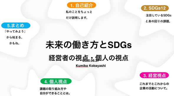 今回は、東証上場企業、老舗、べンチャーなどの企業などの企業で働く、または、独立したスピーカーに2030アジェンダSDGsや仕事の未来をどう思ってるかをお話頂きました。
